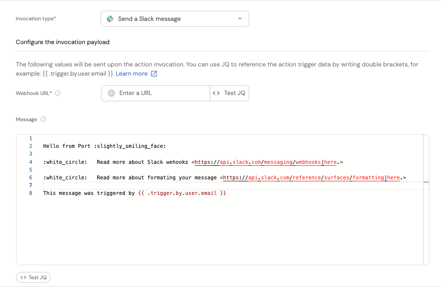 The message uses Slack's mrkdwn formatting, information and examples can be found in the Slack documentation.