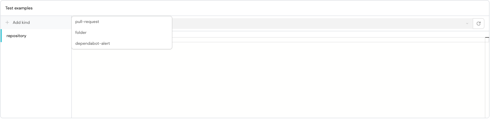 Click on the Add kind button to add an example:
