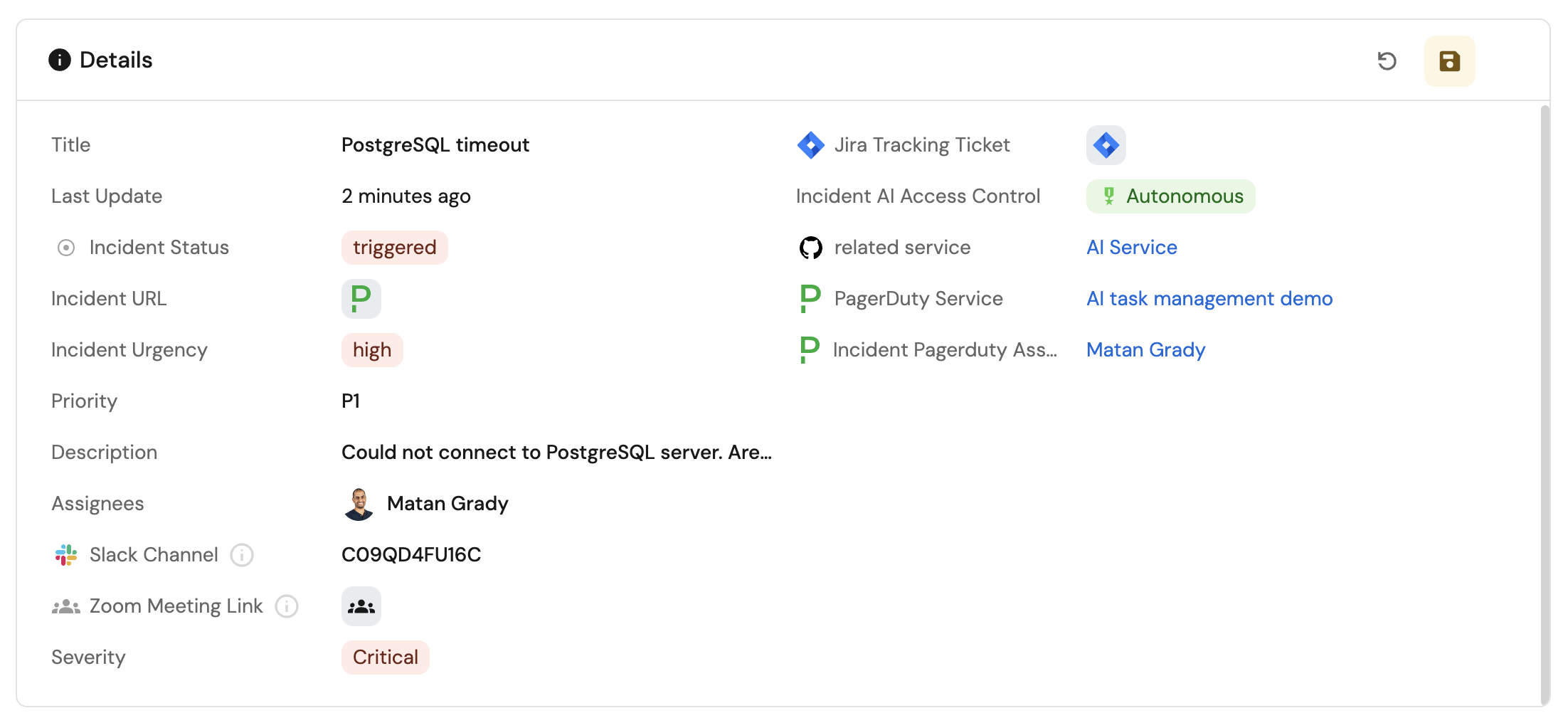 When incidents occur, engineers waste critical minutes manually coordinating response logistics instead of fixing the actual problem. They need to create dedicated Slack channels, set up Zoom meetings for war rooms, create tracking tickets in Jira, and notify the right people โ all while gathering context about affected services.