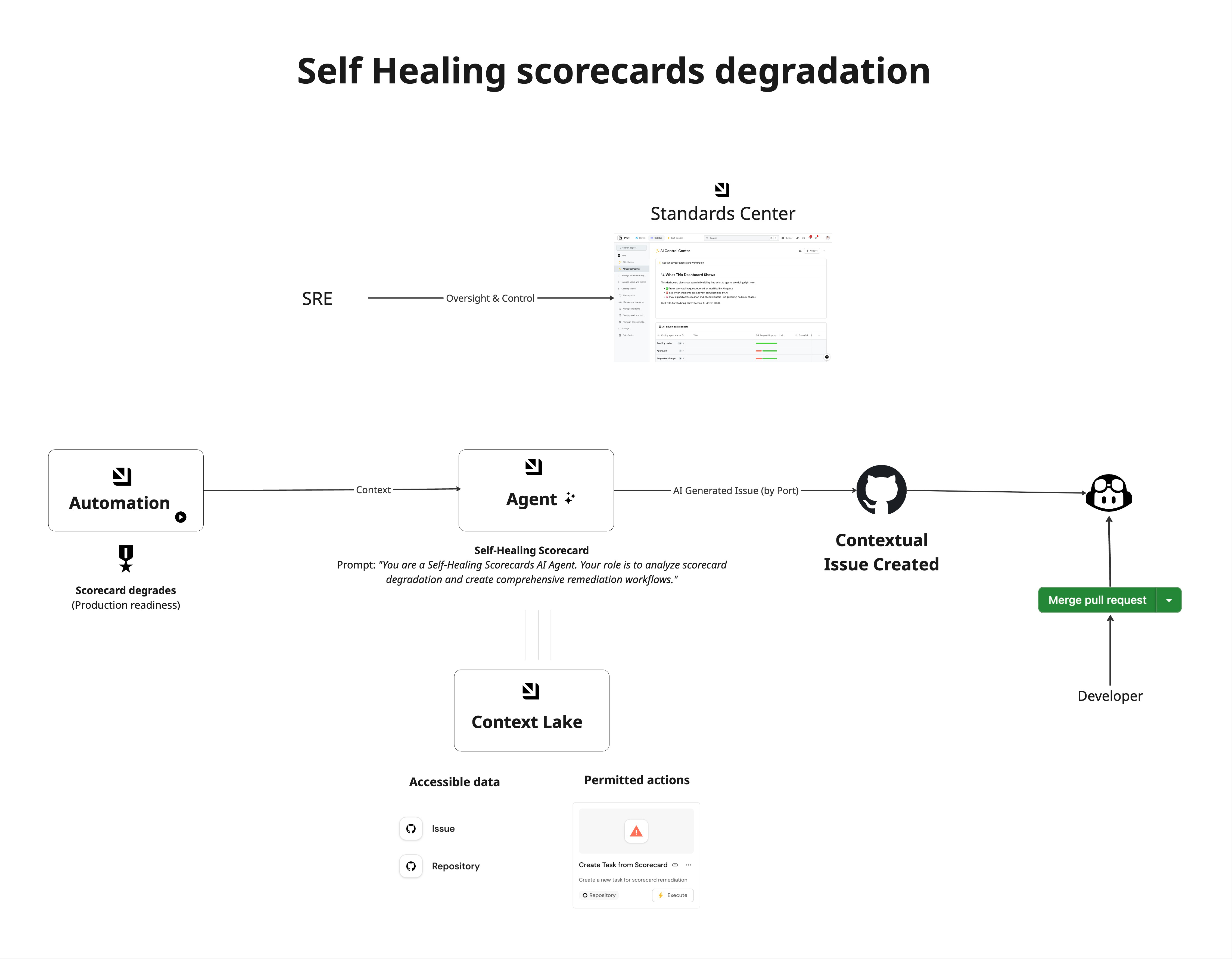 Scorecards in Port help you evaluate the maturity, production readiness, and engineering quality of entities in your software catalog. However, when scorecard statistics degrade, manual intervention is often required to identify and fix the issues.