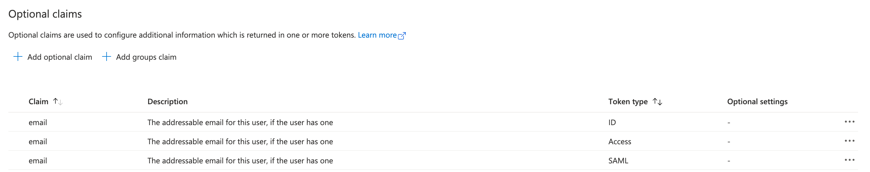 Your optional claims will look like this: